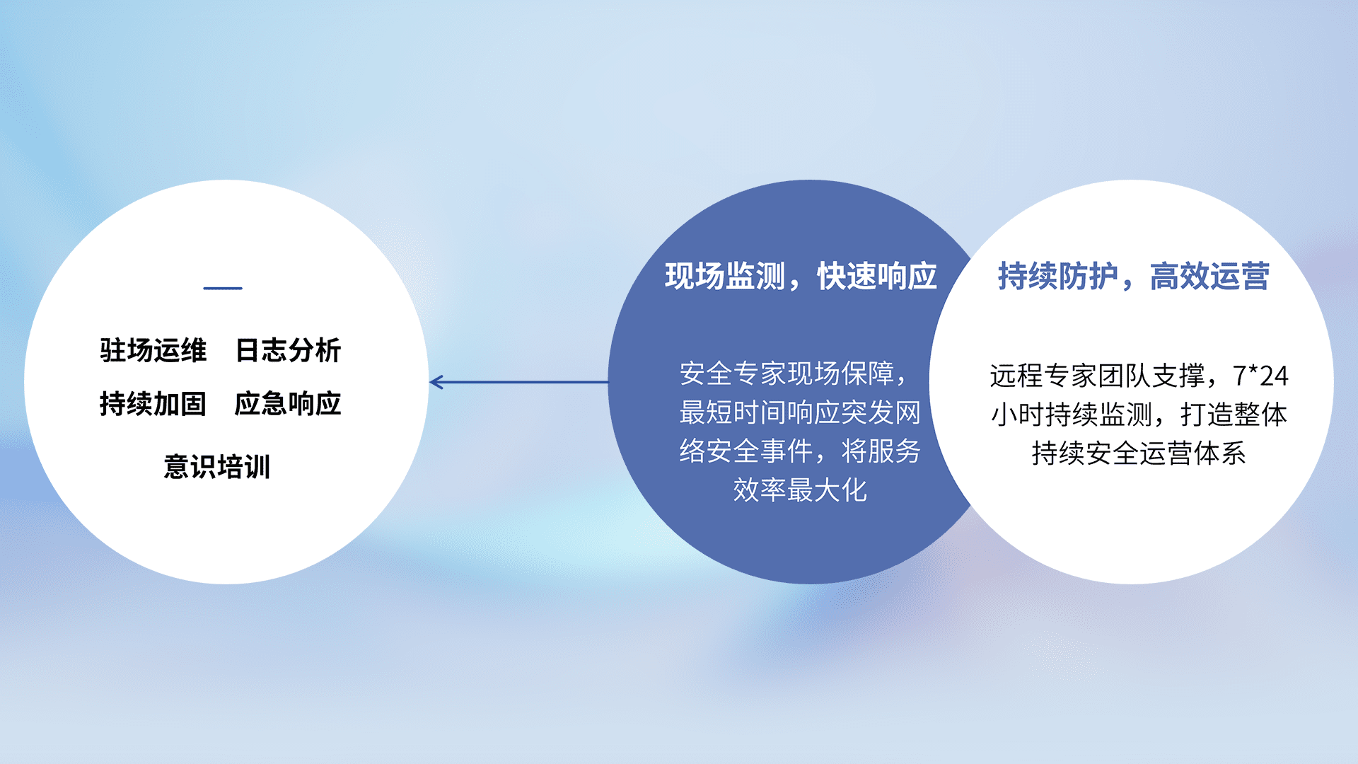 7X24小时持续监测安全事件,保持安全策略有效性,降低资产脆弱性风险,,,精准拦截黑客攻击,,减少被黑客利用的机会,,,,第一时间遏制,,,降低损失。。。